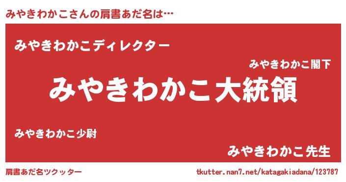 | 欧米人風あだ名 | 『みやきわかこクリステル』 |
