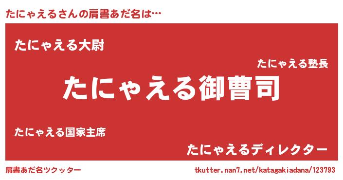 | 女子向けラノベタイトル風あだ名 | 『誰かこのたにゃえるを説明してください! ~契約から始まるウェディング~』 |