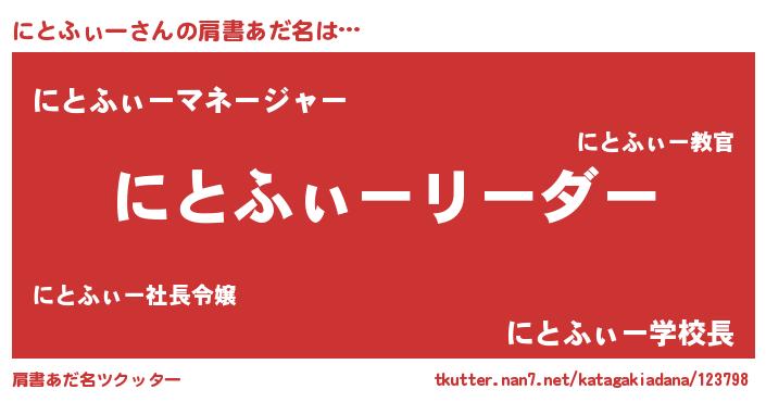 | 女子向けラノベタイトル風あだ名 | 『にとふぃー様がみてる』 |
