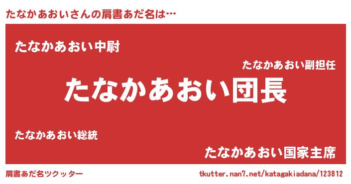 | ヒーロー風カッコイイあだ名 | 『幻影騎士タナ』『ネオタナカアオイ』 |
