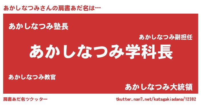 | 男性向けラノベタイトル風あだ名 | 『ノーゲーム・ノーアカシナツミ』 |