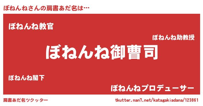 | 胡散臭い通販商品みたいなあだ名 | 『億万長者になれる霊験あらたかなお札…その名も「ぼねんね」』 |