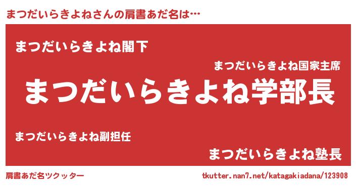 | 男性向けラノベタイトル風あだ名 | 『ノーゲーム・ノーマツダイラキヨネ』 |