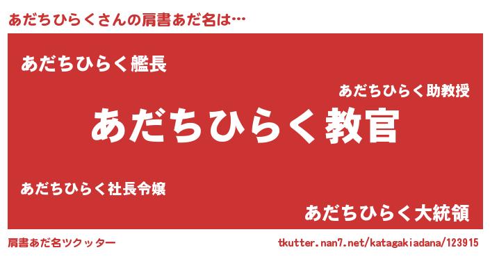 | 意味不明あだ名 | 『住所不定無職あだちひらく(79歳)』 |