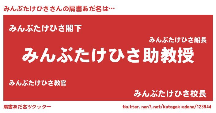 | ヘコむあだ名 | 『みんぶたけひさ(笑)』『豆乳』 |