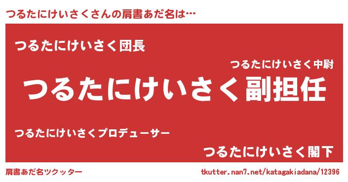 | 男性向けラノベタイトル風あだ名 | 『つるたにけいさくという概念が存在しない退屈な世界 』 |
