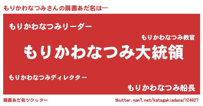 | 意味不明あだ名 | 『もりかわなつみフォーエバー』 |