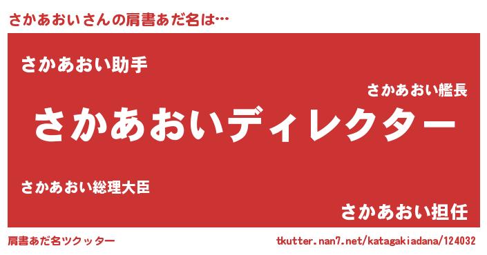 | ヒーロー風カッコイイあだ名 | 『正義の使者さかあおい』『黄金騎士サカ』 |