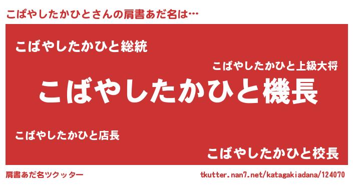 | ヘコむあだ名 | 『こばやしたかひと(震え声)』『こばっ子』 |