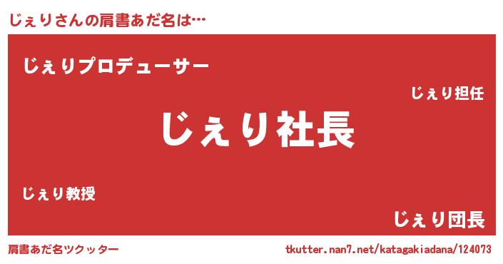 | 男性向けラノベタイトル風あだ名 | 『じぇりの憂鬱』 |
