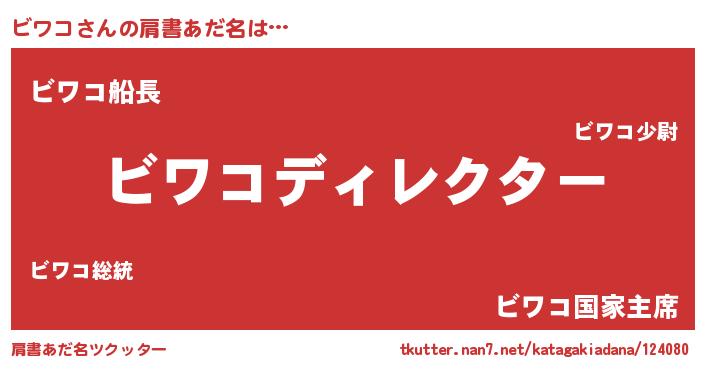 | ヒーロー風カッコイイあだ名 | 『ウルトラビワコマン』『究極戦士ビワコ』 |