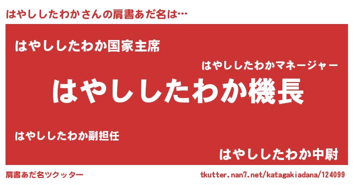 | 男性向けラノベタイトル風あだ名 | 『緋弾のハヤシシタワカ』 |