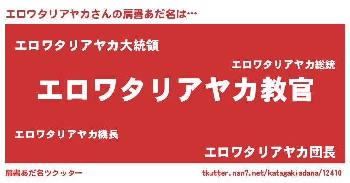 | 欧米人風あだ名 | 『ダレノガレエロワタリアヤカ』 |