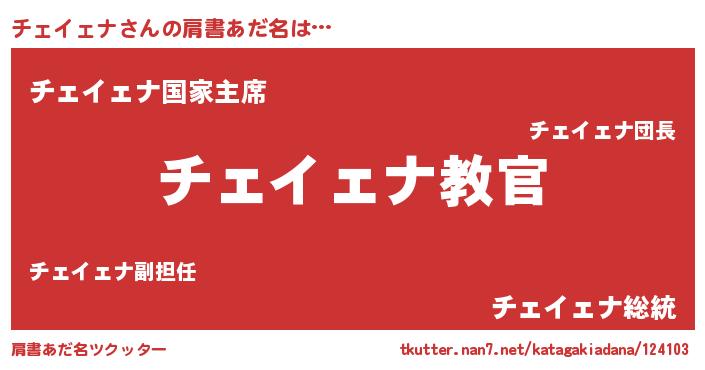 | 意味不明あだ名 | 『住所不定無職チェイェナ(91歳)』 |