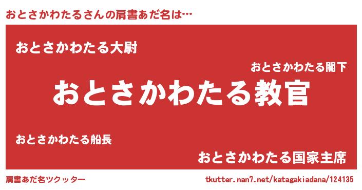 | 男性向けラノベタイトル風あだ名 | 『この素晴らしい世界におとさかわたるを!』 |