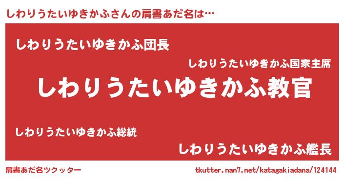 | ポケモン風あだ名 | 『シーワイ』『ヒシワリウタイユキカフ』 |