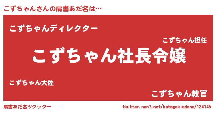 | 男性向けラノベタイトル風あだ名 | 『こずちゃんの憂鬱』 |