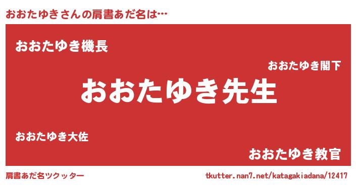 | 意味不明あだ名 | 『永久保存おおたゆき』『自称おおたゆき』 |