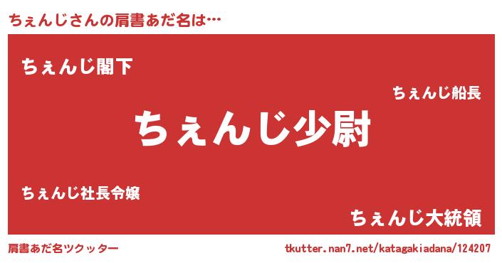 | 女子向けラノベタイトル風あだ名 | 『ちぇんじの玉の輿計画!』 |