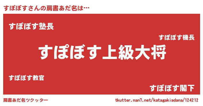 | 男性向けラノベタイトル風あだ名 | 『転生したらすぽぼすだった件』 |