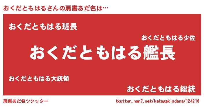 | 男性向けラノベタイトル風あだ名 | 『うちのおくだともはるが世界を掌握している!』 |