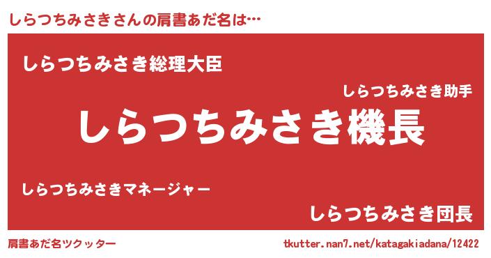| 男性向けラノベタイトル風あだ名 | 『うちのしらつちみさきが世界を掌握している!』 |