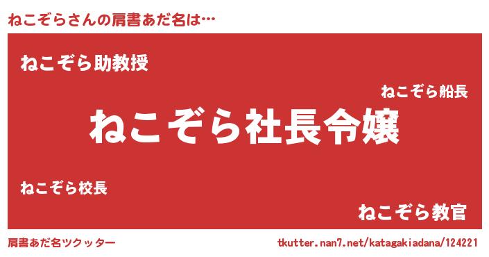 | 欧米人風あだ名 | 『マイケルねこぞら』『ダニエルねこぞら』 |