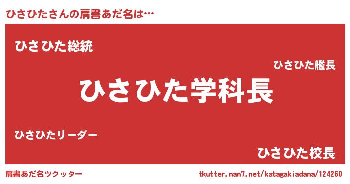 | ヒーロー風カッコイイあだ名 | 『慈愛の使者ひさひた』『ネオヒサヒタ』 |
