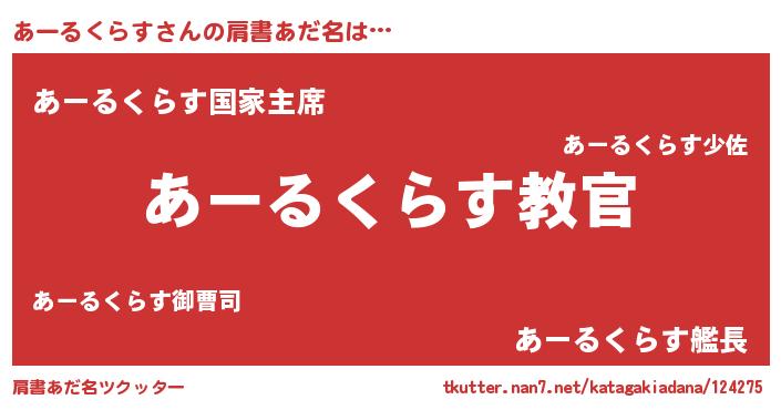 | 男性向けラノベタイトル風あだ名 | 『魔弾の王とあーるくらす』 |