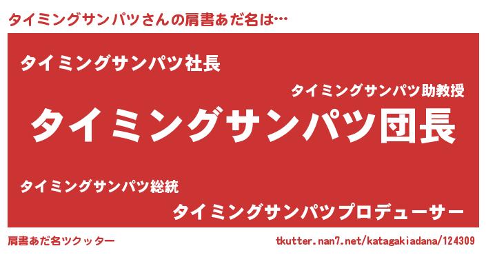 | 胡散臭い通販商品みたいなあだ名 | 『全米が絶賛したサプリメント…その名も「タイミングサンパツ」』 |