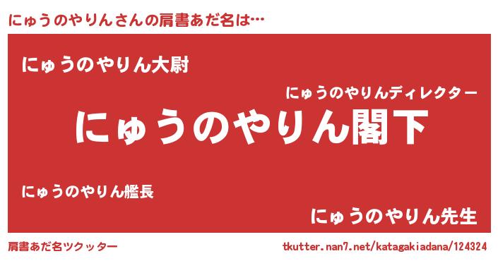| 意味不明あだ名 | 『自称にゅうのやりん』 |