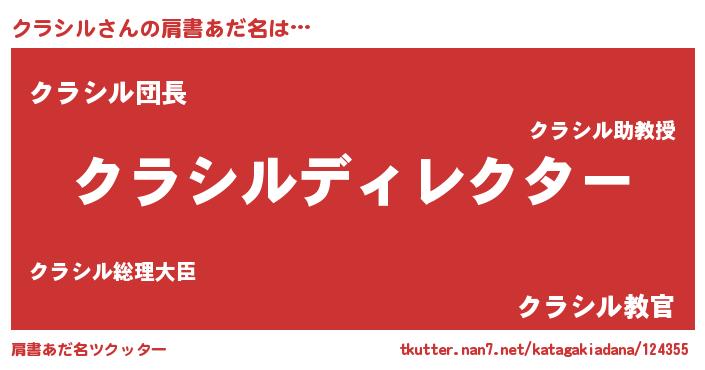 | 欧米人風あだ名 | 『アンジェラ・クラシル』 |