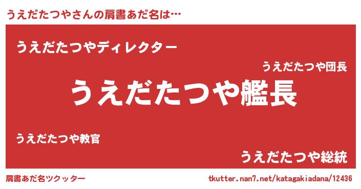 | 男性向けラノベタイトル風あだ名 | 『うちのうえだたつやが世界を掌握している!』 |