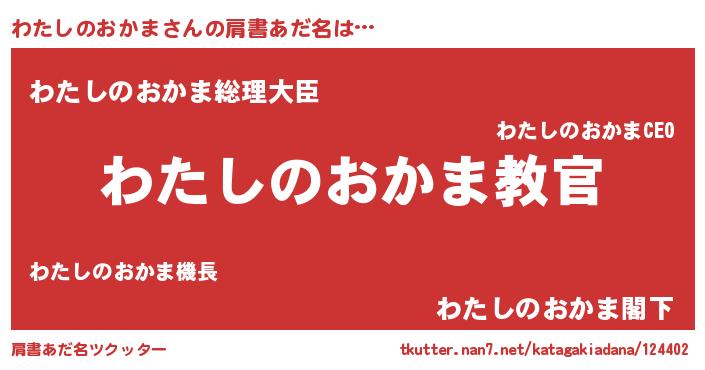 | ヒーロー風カッコイイあだ名 | 『仮面ワタダー』『ネオワタシノオカマ』 |