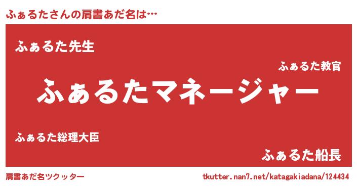 | 男性向けラノベタイトル風あだ名 | 『はたらくふぁるたさま!』 |
