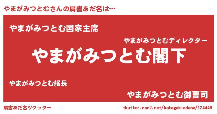 | 意味不明あだ名 | 『自称やまがみつとむ』 |