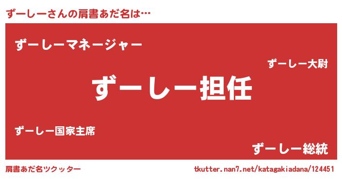 | 男性向けラノベタイトル風あだ名 | 『ずーしーという概念が存在しない退屈な世界 』 |