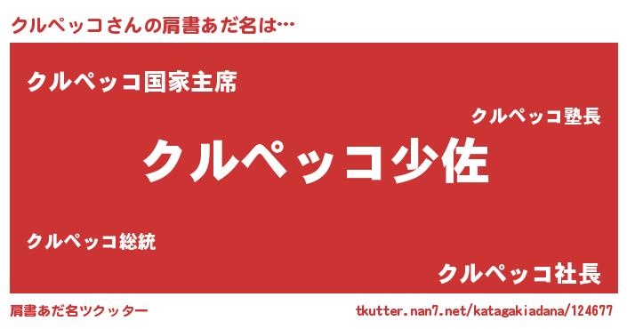 | 男性向けラノベタイトル風あだ名 | 『クルペッコスレイヤー』 |