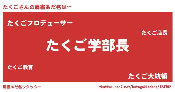 | ヒーロー風カッコイイあだ名 | 『正義の使者たくご』『スーパータクゴ』 |