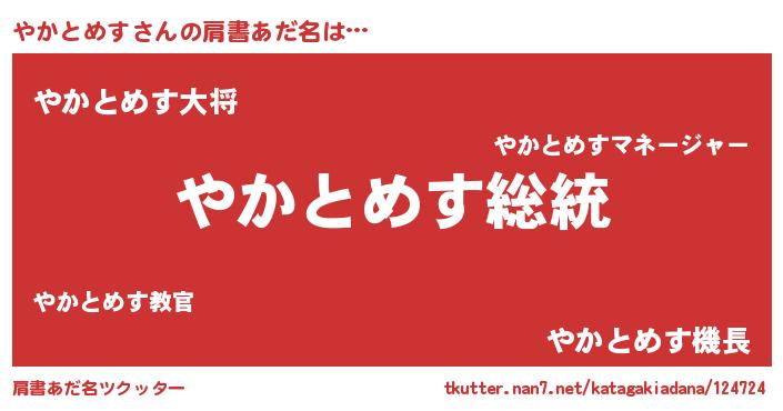 | 意味不明あだ名 | 『自称やかとめす』『永久保存やかとめす』 |