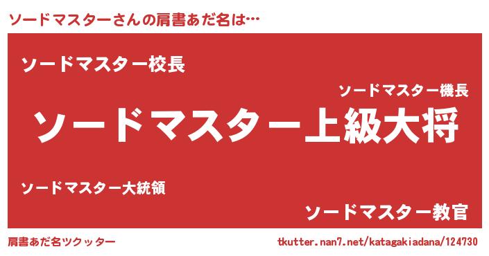 | 男性向けラノベタイトル風あだ名 | 『ソードマスタースレイヤー』 |