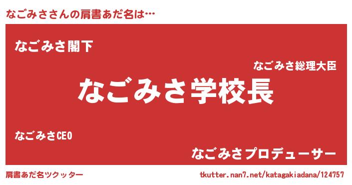| ヘコむあだ名 | 『豆乳』『なごふぇ~』『なごっぺ』 |
