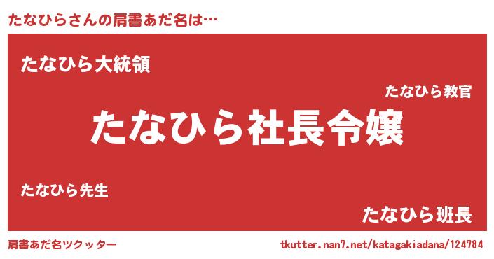 | ヒーロー風カッコイイあだ名 | 『スーパータナヒラ』『銀牙騎士タナ』 |
