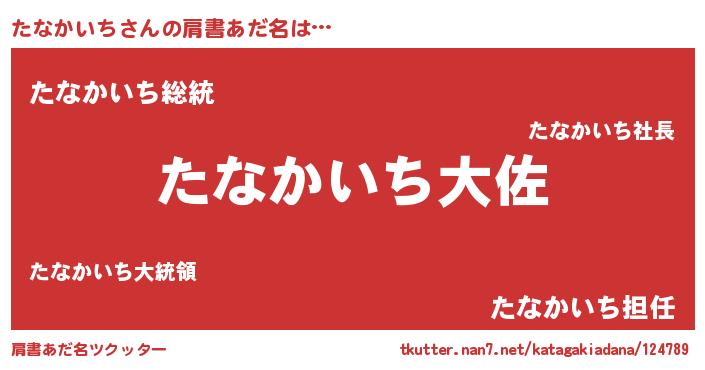 | 男性向けラノベタイトル風あだ名 | 『たなかいち~年齢イコール彼女いない歴の魔法使い~』 |