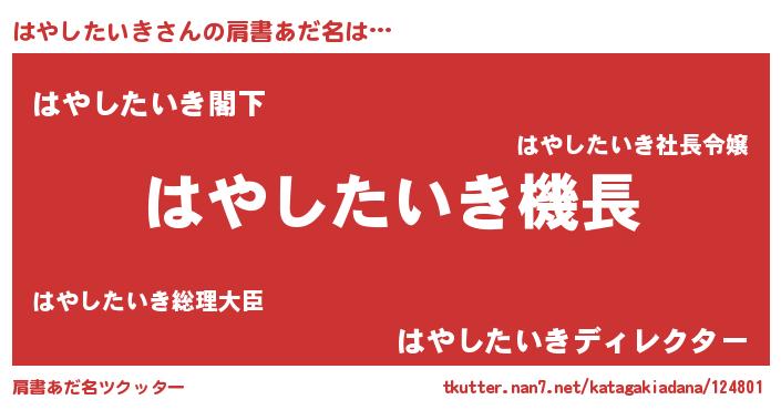 | ヒーロー風カッコイイあだ名 | 『最強戦士ハヤシタイキ』 |