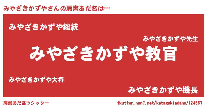 | 男性向けラノベタイトル風あだ名 | 『魔弾の王とみやざきかずや』 |