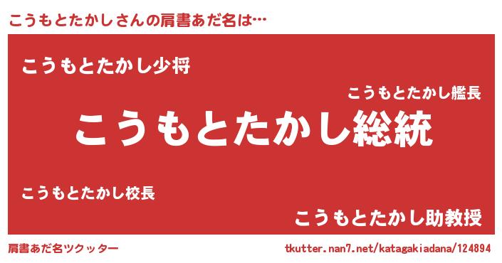 | 男性向けラノベタイトル風あだ名 | 『魔法科高校のこうもとたかし』 |