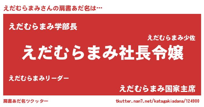 | 女子向けラノベタイトル風あだ名 | 『(仮)えだむらまみのやんごとなき事情』 |