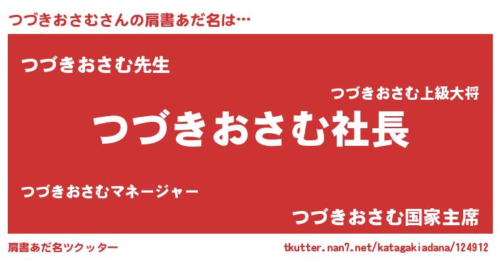 | 男性向けラノベタイトル風あだ名 | 『ツヅキオサムアートオンライン』 |
