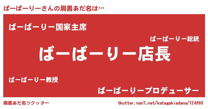 | ヒーロー風カッコイイあだ名 | 『スーパーバーバーリー』『魔戒騎士バー』 |